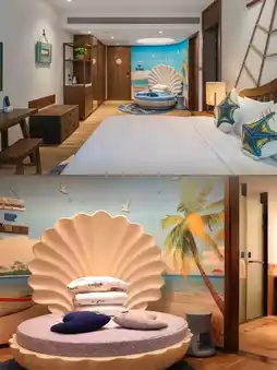 We booked a Family Audio-Visual Room, and its decor was brimming with childlike charm. Cartoon-themed bedding, adorable plush toys, and ocean-themed murals on the walls – every detail showcased the hotel's thoughtful touch. The room also featured a dedicated children's tent and toys, and my child couldn't wait to dive in and play as soon as we entered. To our greatest surprise, the room even had a small home theater, allowing our family to comfortably watch movies in bed at night, enjoying precious family time.
