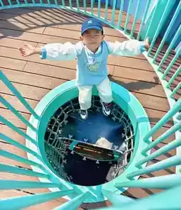 3️⃣ High-altitude challenges: Three-story climbing nets + rainbow slides (ages 4+ with parents)