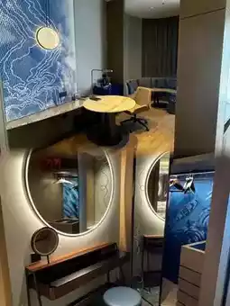 The room combines stylish design with modern technology, featuring button-controlled curtains for convenience. The Executive Deluxe Lake View Suite included welcome fruits and was well-equipped. The gym provided towels and water, while the pool was bright and spacious. The Executive Lounge on the 43rd floor offered stunning views, and a robot delivered toiletries, adding to the seamless service. The only minor hiccup was the slightly complicated operation of the hidden LED light strip at the sink, which took some figuring out.
