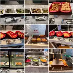 - Dining options were plentiful: the Executive Lounge served dinner (17:30–19:30) with cold dishes, salads, fruits, desserts, cakes, and soups—the rice cakes and braised goose wings were delicious, and table service was attentive. The 2nd-floor breakfast featured Chinese noodles, fried dough sticks, stir-fries, Western hot dishes, sausages, bakery items, cold cuts, cheese, ham, and local specialties like tofu skin, shredded tofu soup, glutinous rice balls, and crispy sesame pancakes.