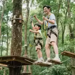 13:30 Forest Adventure Zone (high-altitude walkway + jungle zipline) → 15:30 Petting Zoo → 17:00 Return.