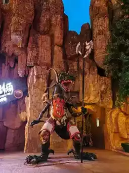 Each ride features unique dinosaur elements, and dinosaur models accompany you in the queue areas!