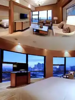 The hotel has multiple restaurants and bars, an indoor heated swimming pool (on the 3rd floor), a fitness center with Life Fitness equipment, and an executive lounge on the 17th floor offering a 270-degree city view. The lounge provides exclusive services for guests staying on the executive floors and offers free parking.