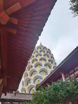 From there, take another 10-minute taxi ride to Prajna Mountain Changzhou Baolin Zen Temple. Address: No. 98, Hongxi Road, Wujin District, Changzhou. Open: 9:00 AM - 4:00 PM. This Zen temple exudes a secluded atmosphere. Its beautiful pineapple-shaped architecture houses a 40-meter-tall statue of Guanyin. The cultural and creative shops at Baolin Temple are also adorable.