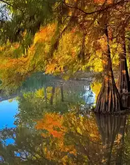 A lakeside autumn secret like an oil painting
