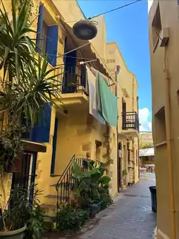 Traveling in Greece: Chania on Crete Island and Balos Pink Beach. Take an overnight ferry from Athens to Chania, the second largest city on Crete Island, known for its well-preserved old town and Venetian harbor. At sunrise, the ancient lighthouse at the Venetian harbor and the pink clouds look like a painting. On a city walk through Chania’s old town, the architecture blending Venetian and Ottoman styles and the narrow streets full of medieval charm make for a very pleasant stroll in the sea breeze.