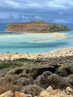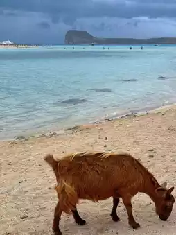 From the town of Kissamos, take a Jeep with eDay Travel Tours & More to Balos to check out the pink beach. Hiking to and from the beach from the mountaintop, experiencing strong winds, sun, rain, ever-changing weather, and sheep everywhere is a very unique experience.