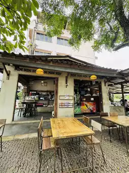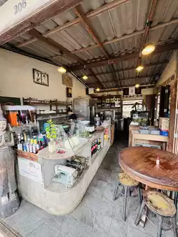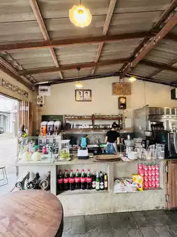 coffee, and a full range of drinks, served in a warm wooden house atmosphere. It is perfect for sitting and chatting and eating comfortably.