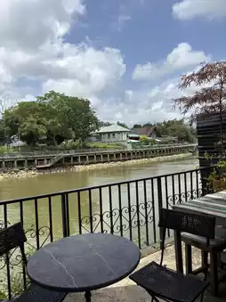 Enjoy a relaxing coffee and cake at Thammada Cafe, a riverside coffee shop in Chanthaburi. The cafe's decor is anything but ordinary, creating a warm and friendly atmosphere. There are both indoor and outdoor seating areas, both open to the natural breeze and with river views. The cafe even has cats, and all the decorations are cat-themed. There are also cat dolls for sale in front of the shop. The coffee is delicious and the cakes are delicious. The outdoor seating area can be quite hot during the day, but it's great for taking photos.