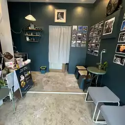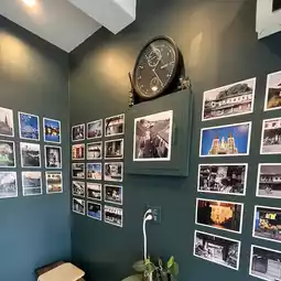The interior is decorated in a cool, dark tone with black and white photos plastered all over the walls, giving it an artistic feel. There's a small, private seating area perfect for relaxing and sipping coffee. If you love vintage photography or a rugged, cool vibe, this is a must-try.