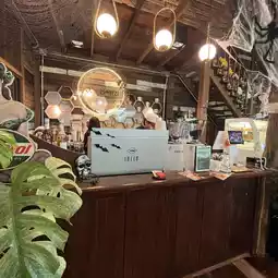 Just seeing the sign outside makes you feel relaxed. Once you step inside... the entire place is made of wood. The floors are shiny, the furniture is dark leather, and the lamps are woven, dimly lit. It's so warm! It truly feels like you're at a friend's house that's turned into a cafe. You can sit and chat, take photos, and every angle is beautiful. It has a bit of a vintage feel.