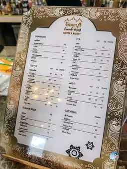 🍵The interior of the shop is decorated in Lanna style. 💠 In addition to drinks, there are also a variety of cakes and bakery menus. 🍰 The highlight of this place 📸