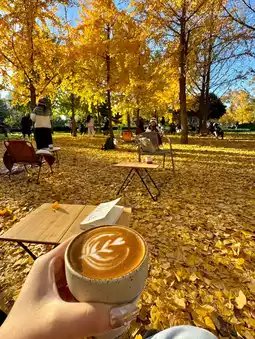 Grab a cup of warm coffee, find a spot under the ginkgo trees, and simply breathe. ☀️ It’s the kind of place that invites you to slow down, read a book, or just sit in silence while the world outside rushes on. 📖