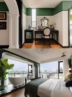 As soon as you enter, you will be attracted by the retro Nanyang villa x&Chinese-style patio 🤩, which is full of blue and white porcelain elements. Check in and take photos to make great photos📷! Bathtub king room, twin room, parent-child slide room, children love it🧒