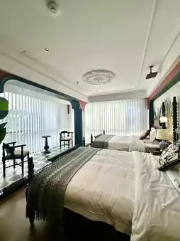 There are parent-child slide rooms, bathtub king rooms, and twin rooms