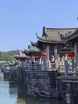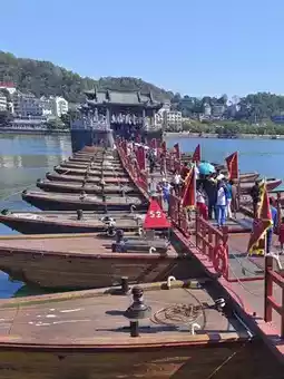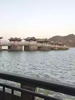 Guangji Bridge, also known as Xiangzi Bridge, is one of Chaozhou's landmarks and was listed as a national key cultural relic protection unit in 1988. Guangji Bridge consists of two stone beam bridges on the east and west sides and a floating bridge in the middle. There are 24 bridge pavilions on the stone beam bridges near the banks, each with its own unique style. The middle section of the bridge is a floating bridge connected by 18 boats, about 97 meters long, fixed with iron chains. It is usually used by citizens for walking. In case of floods or large ships needing to pass, the iron chains can be untied, making it very flexible. It was praised by the famous bridge expert Mao Yisheng as the world's earliest open-close bridge. The night light show on Guangji Bridge is officially named 'Light of Phoenix City' and is held every night. (Images 7-12)