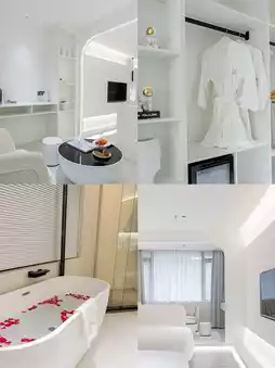 This Wabi-sabi style homestay has floating bathtubs, transparent bathtubs, and slide-equipped family rooms. All rooms are equipped with projectors and smart toilets π.