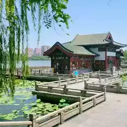 On the small island in the center of the lake, ancient pavilions and towers stand quietly, providing a perfect backdrop for photography.