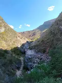 The valley is slippery underfoot, and you jump over large rocks and rivers. There are slippery places, and the climb up is quite tough, but you can see a magnificent view.