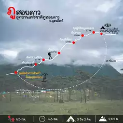 * The hiking trails are quite steep and have many slopes, such as the Song Yat slope, the Prab Sien slope, the Pa Ko slope, the Suea Krong slope and the Death slope.