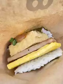 This time, I tried two rice balls: one was a limited-edition flavor—shrimp with egg yolk mayo—and the other was a traditional flavor with island tofu and miso sauce. Both were absolutely delicious. The shrimp was tender and bouncy, and the egg yolk mayo added a refreshing touch. Each bite of rice and luncheon meat brought out the savory goodness of the rice ball—highly recommended.