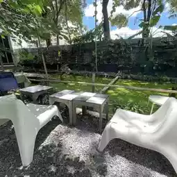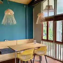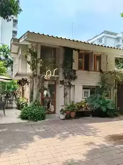 A cafe and restaurant with a nice atmosphere, like being in the countryside with a lotus pond to sit and watch. The shop has both air-conditioned and outdoor areas with a large seating area. This shop is located in the city, Lat Phrao area. The shop's food is both savory and sweet. The shop's signature cake is the pandan coconut cake, 165 baht/piece. It's very delicious. People who like coconut can follow this. The food is also delicious and well-presented. The drinks are delicious. This shop is called "Je Jojekoff". The shop may have a small parking lot.