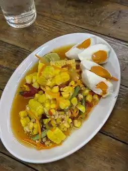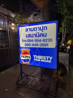 Lab Ta Puk Senanikom is a very delicious som tum restaurant with reasonable prices, generous portions, and every dish is tasty and spicy. There are many menu options. The restaurant is open from 10:30 AM to 10:30 PM, with seating available both inside and outside. We really like the santol som tum here; it's delicious, spicy, and rich in flavor. The som tum with tiny shrimp is equally delicious. Another favorite dish we often order is grilled chicken tom khlong. This is a tasty restaurant that we visit frequently.