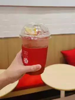 📍Located in the PTT building, the atmosphere is calm and tranquil. The decor is modern yet warm, using wood and earth tones, along with the signature soft pink tones of strawberries.