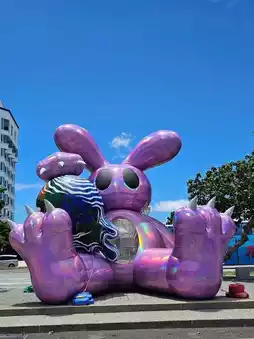 I stood at their feet and looked up. The gradient luster of the colorful rabbits and the gentle expressions of the cats made me want to get closer. With the surrounding sea view and blue sky as a backdrop, this place has become the most popular photo-taking spot. It is not just an art installation, but a journey to embrace the wind and find healing in nature.