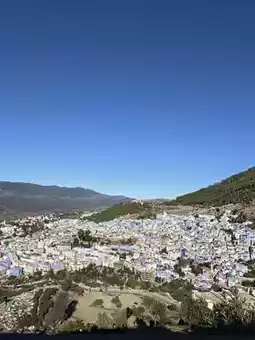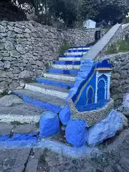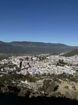 A city in the Rif mountains of the northwest Morocco known for its striking blue painted buildings of the old town.
