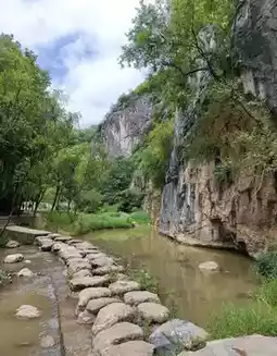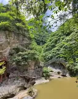 Even more breathtaking are the various water forms atop the cliffs. Some fall like white silk ribbons, streaming straight down from great heights; others weave crystal-clear bead curtains above the plank road, with water droplets splashing like mist and rain, refreshing the soul. Mountains, water, rocks, and trees all become uniquely crafted scenes; pavilions, bridges, corridors, and gazebos dot the area, complementing nature and adding cultural elegance without overshadowing the natural wonder.