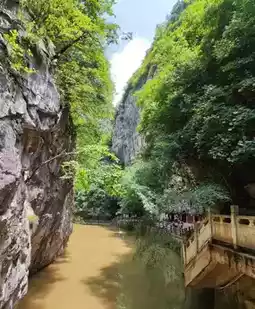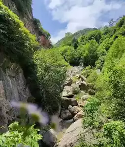 The wonder of Xixia lies in its steep mountains and rugged rock formations; its beauty is found in the winding water flow and lush forests. Looking around, one side features towering majestic peaks, while the other side has staggered sheer cliffs. Between the cliffs, layers of greenery overlap, ancient trees stand tall, vines entwine and hang down, exuding a primitive and tranquil atmosphere everywhere. Between the two mountains, the Xiangshui River meanders, sometimes murmuring gently as it flows around rocks; sometimes rushing fiercely, crashing against boulders and creating white splashes. The sound of the water is clear and melodious, and even from afar, one can still hear nature’s echo.