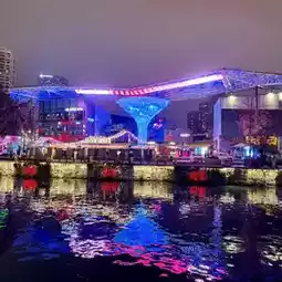 On both sides, there are walkways on both sides of the river