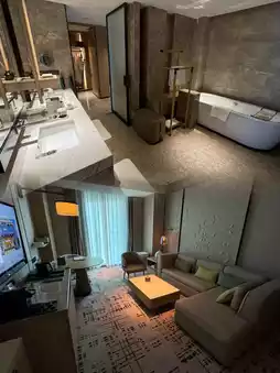 Upon arrival at the hotel, I was first struck by its modern and elegant exterior design, as well as the high ceilings and magnificent crystal chandeliers in the lobby, creating a luxurious and cozy atmosphere. The warm welcome and efficient check-in process by the front desk staff made me feel at home instantly.