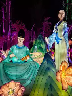 During the lantern festival, there are hundreds of other lantern displays, including themes such as pandas, Fuxi, Nuwa, Li Bai, and Wen Jun, showcasing the history, culture, and humanistic charm of Chengdu.