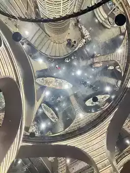 ✨The inside is like a maze because the ceiling is made of glass, making it look mysterious and vast. There are more than 80,000 books❗️