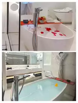 The bathtub in the room was so comfortable that I wanted to jump in, and they even prepared a bubble bath, which was so romantic!