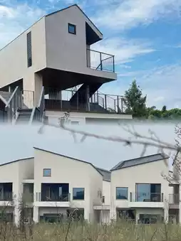 🎨Design Style: The whole building looks like a white iceberg elegantly floating on the water 🌊, seamlessly integrated with the surrounding pastoral scenery, full of sculptural and artistic atmosphere 🎭, stepping into it, as if you are in a miniature art gallery 🖼, every detail tells a unique aesthetic story.