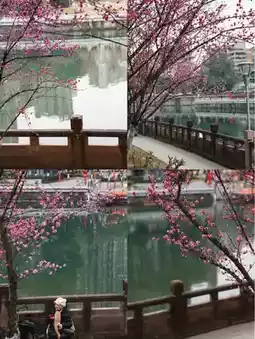 ☑️Then walk along the main entrance of the park, and the pictures will be more beautiful with the ancient buildings by the river.