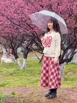 The plum blossoms here are not very tall, so you don’t need to set up a ladder. Standing in front of the plum blossoms, it looks very good with a telephoto lens