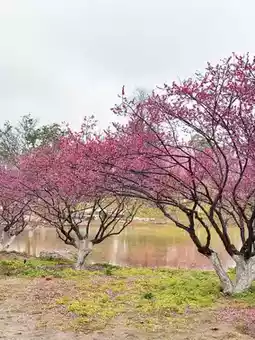 It is right by the lake, so you don’t have to walk a lot. Now the plum blossoms are about 70% in bloom