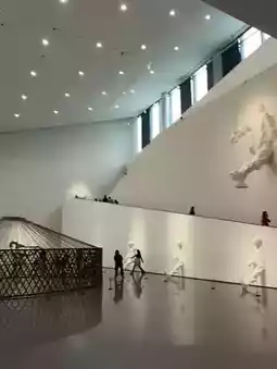 Hall A: The main staircase and the "Catching the Moon and Embracing the Wind" frosted glass screen installation are stunning.