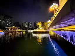 Located in the upper reaches of the Yangtze River in China, Chengdu in Sichuan Province is famous for its pandas. Another thing that Chengdu is famous for, besides pandas, is its night views. One of the representative night view spots in this area is 'Hé Jiāng Tíng'. Located next to the Jin River, Hé Jiāng Tíng was built around 1,200 years ago and was a place where boats used to depart. It is now used as an observatory. Hé Jiāng Tíng, with its subtle lighting, is charming in itself, but the city night view across the river also catches the eye. If you are touring the Jin River in Chengdu, it is recommended to visit at dusk to enjoy the night view around Hé Jiāng Tíng.