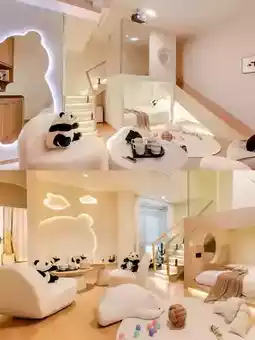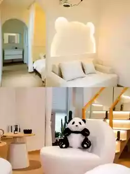 Stepping into the hotel, it's like entering a whimsical panda paradise. From the hotel entrance to every corner of the rooms, panda elements are everywhere! Adorable panda sculptures greet you in the lobby, panda-themed artwork adorns the hallways, and the rooms feature panda lamps, cushions, and even carpets. Every little detail showcases the designer's ingenuity, immersing you in a world of panda charm.