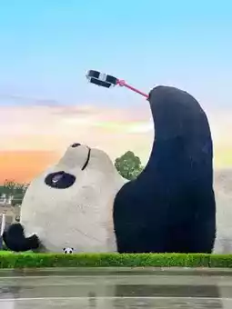 A luxury shopping mall with world-class brands and a photo spot with the giant panda statue on the roof