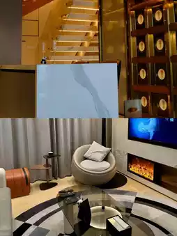 3. The receptionists are all very welcoming. After check in, they'll take you to your room and give you a tour, which feels very ceremonious. The suite I stayed in has two floors, with the bedroom upstairs and the entertainment area downstairs, and two bathrooms. It's fully equipped, and you can even do laundry and cook. There's an oven, coffee machine, and everything you need.