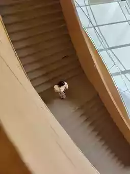 The beautiful curve of the spiral staircase is like a vortex, attracting people to explore.