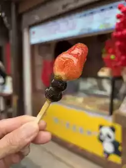 The shop we ate at had many kinds of fruit to choose from. It was sold in boxes of 5 sticks per box. The price should be around 25-30 yuan. Location: On the wide and narrow pedestrian street, Kuanzhaixiangzi Alley #Snacks from China #Snacks in China #Chengdu food #Travel China by yourself