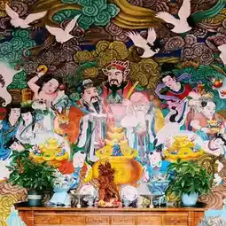 In the calm and lush grounds, a magnificent mountain gate, a vermilion-painted main hall, and an altar dedicated to Taoist gods are neatly lined up, quietly soothing the hearts of visitors♩