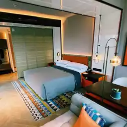 "Canopy by Hilton Chengdu" is a stylish design hotel located right near Chunxi Road in the center of Chengdu. 🏨 Pop colors and art are scattered throughout the sophisticated space, making any photo look great! ✨